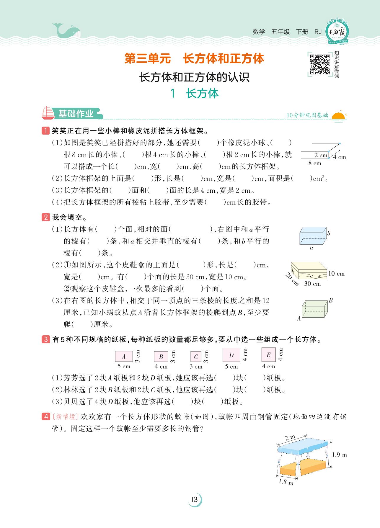2023下册五年级数学人教版 第三单元 长方体和正方体——1 长方体