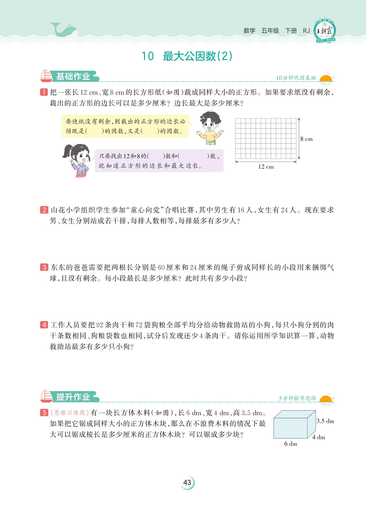 2023下册五年级数学人教版 第四单元 分数的意义和性质——10 最大公因数(2)
