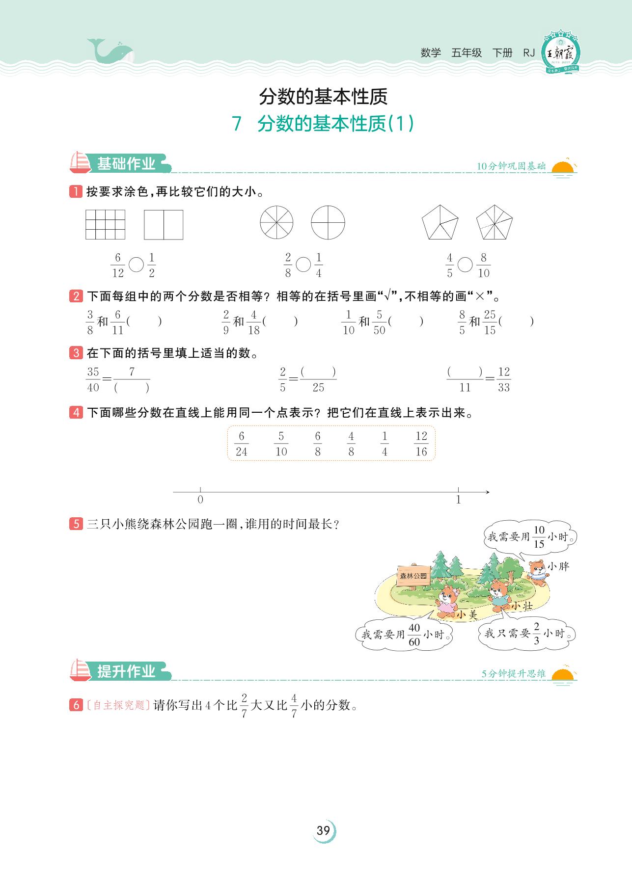 2023下册五年级数学人教版 第四单元 分数的意义和性质——7 分数的基本性质(1)