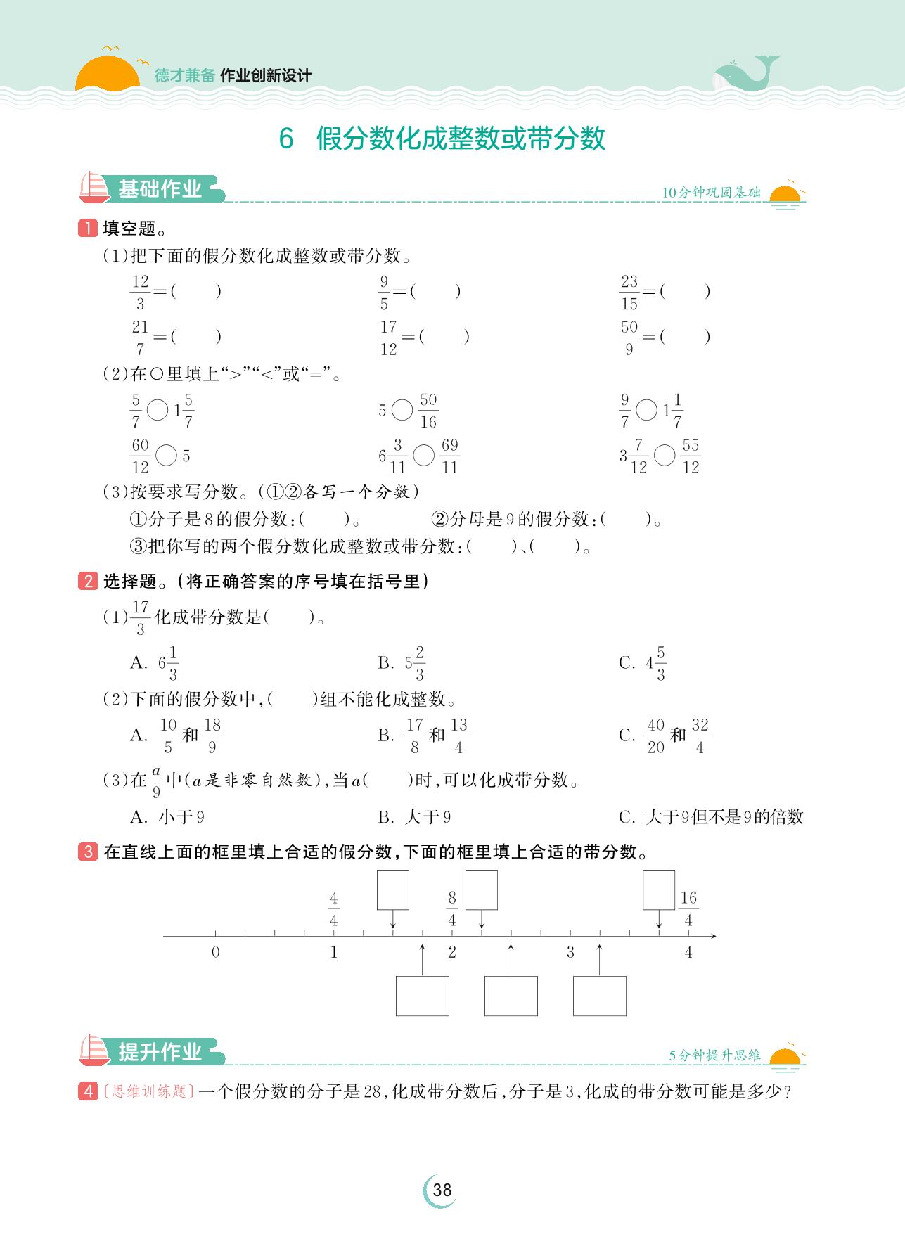 2023下册五年级数学人教版 第四单元 分数的意义和性质——6 假分数化成整数或带分数