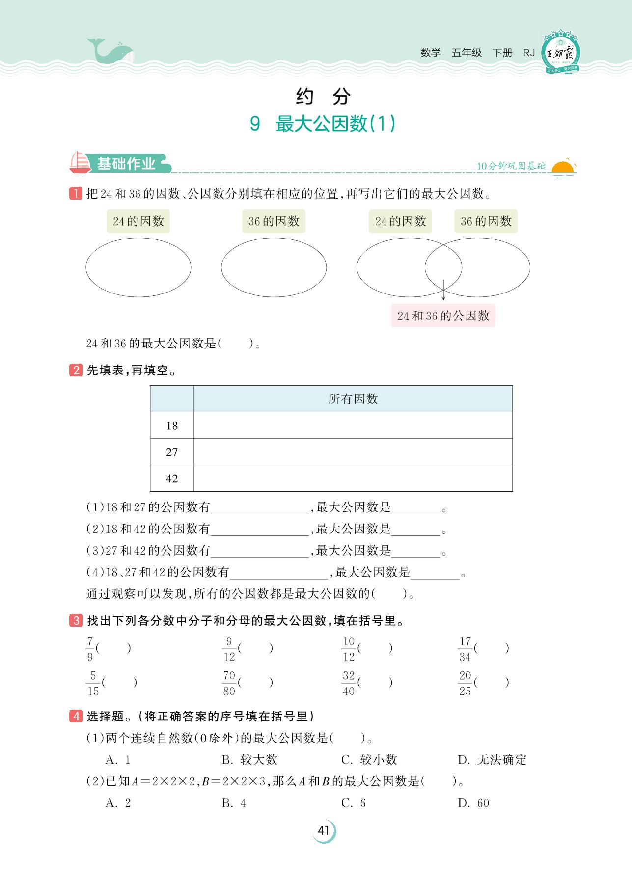 2023下册五年级数学人教版 第四单元 分数的意义和性质——9 最大公因数(1)