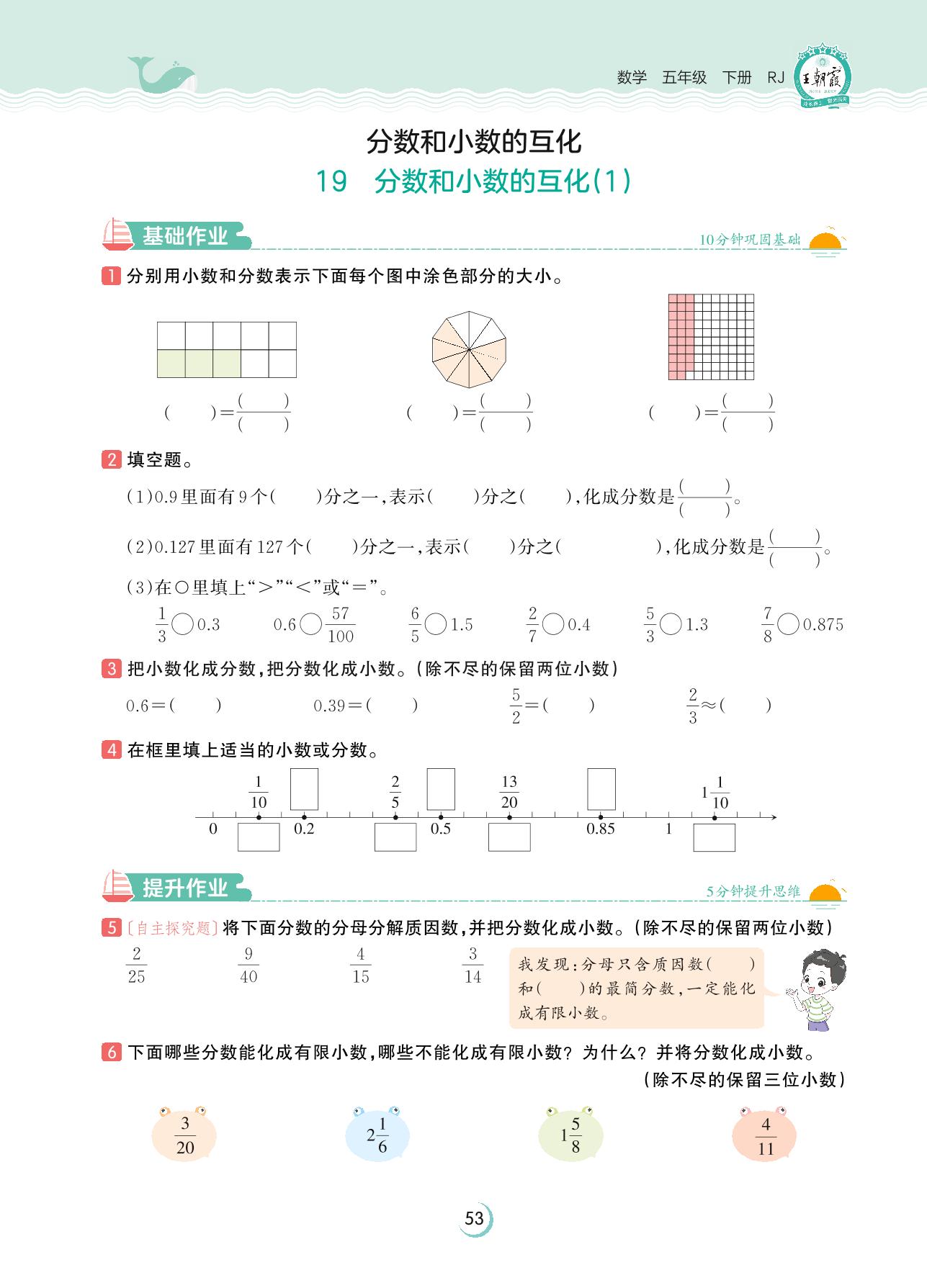 2023下册五年级数学人教版 第四单元 分数的意义和性质——19 分数和小数的互化(1)