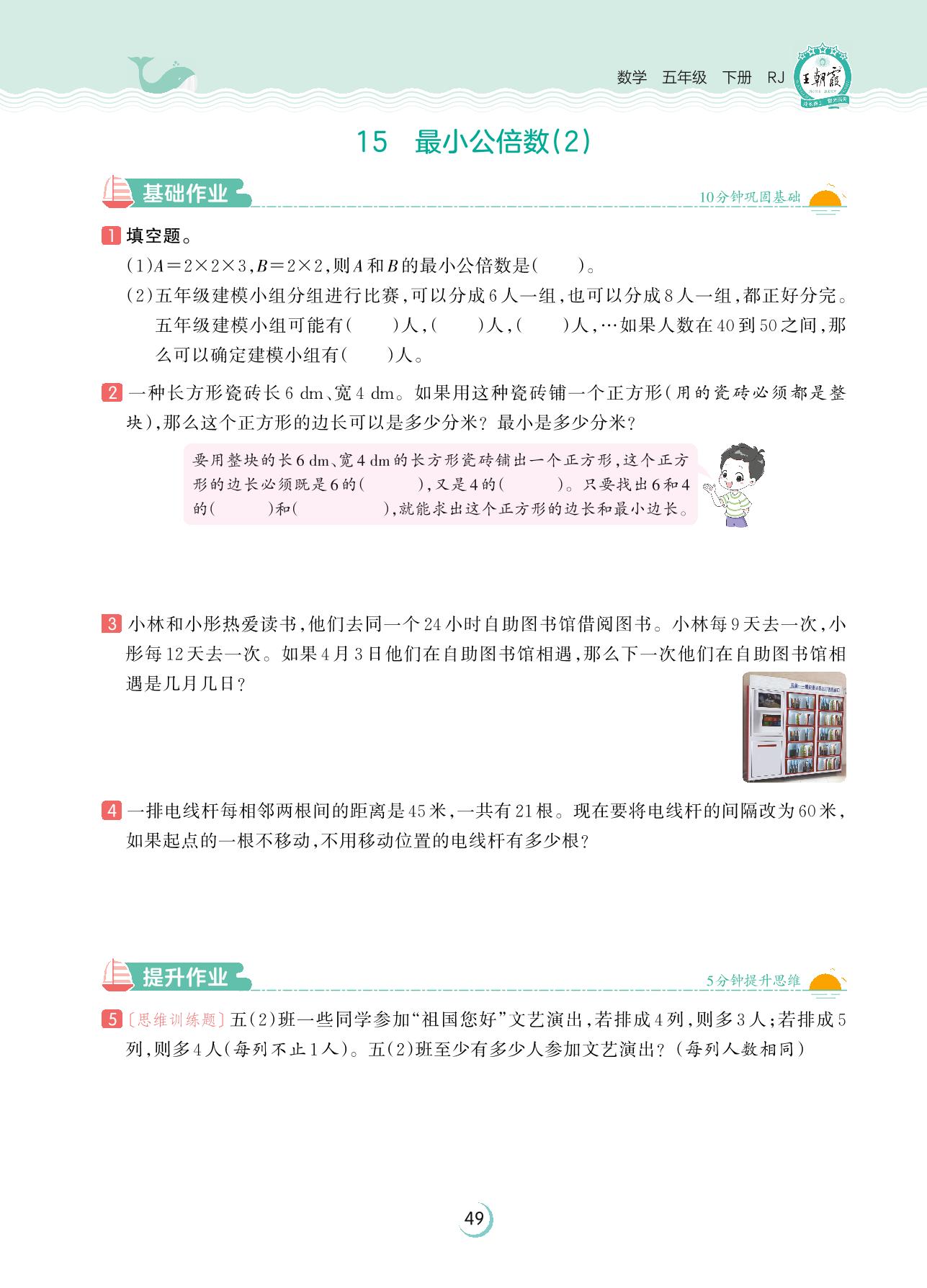 2023下册五年级数学人教版 第四单元 分数的意义和性质——15 最小公倍数(2)