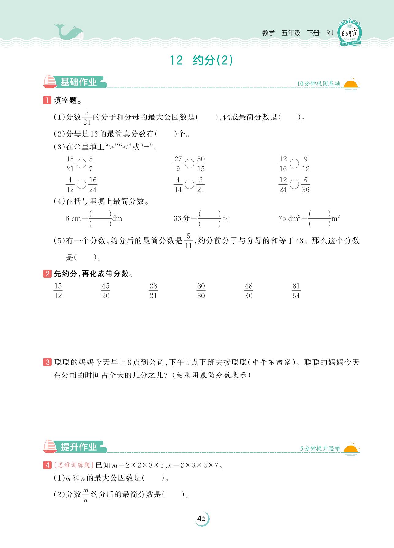 2023下册五年级数学人教版 第四单元 分数的意义和性质——12 约分(2)