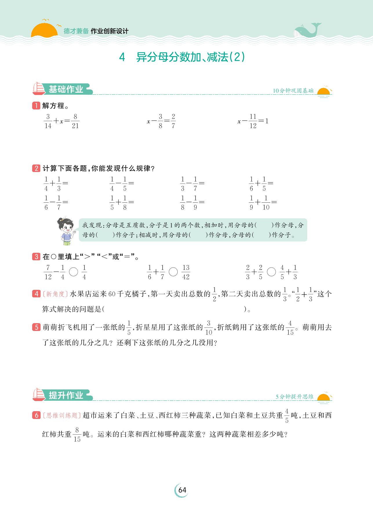 2023下册五年级数学人教版 第六单元 分数的加法和减法——4 异分母分数加、减法(2)