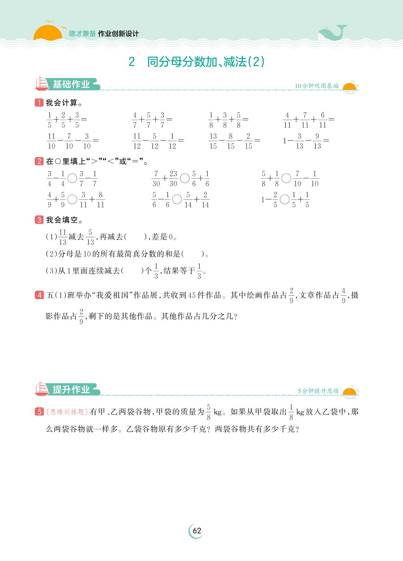 2023下册五年级数学人教版 第六单元 分数的加法和减法——2 同分母分数加、减法(2)