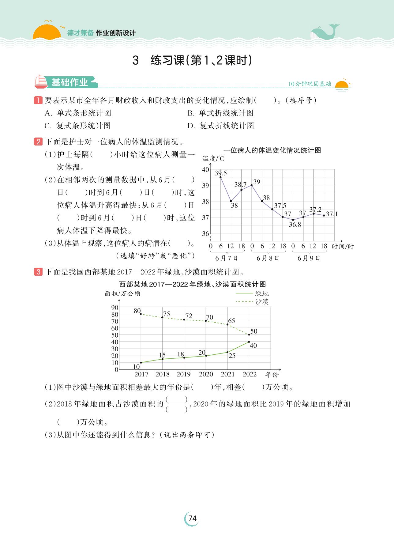 2023下册五年级数学人教版 第七单元 折线统计图——3 练习课(第1、2课时)