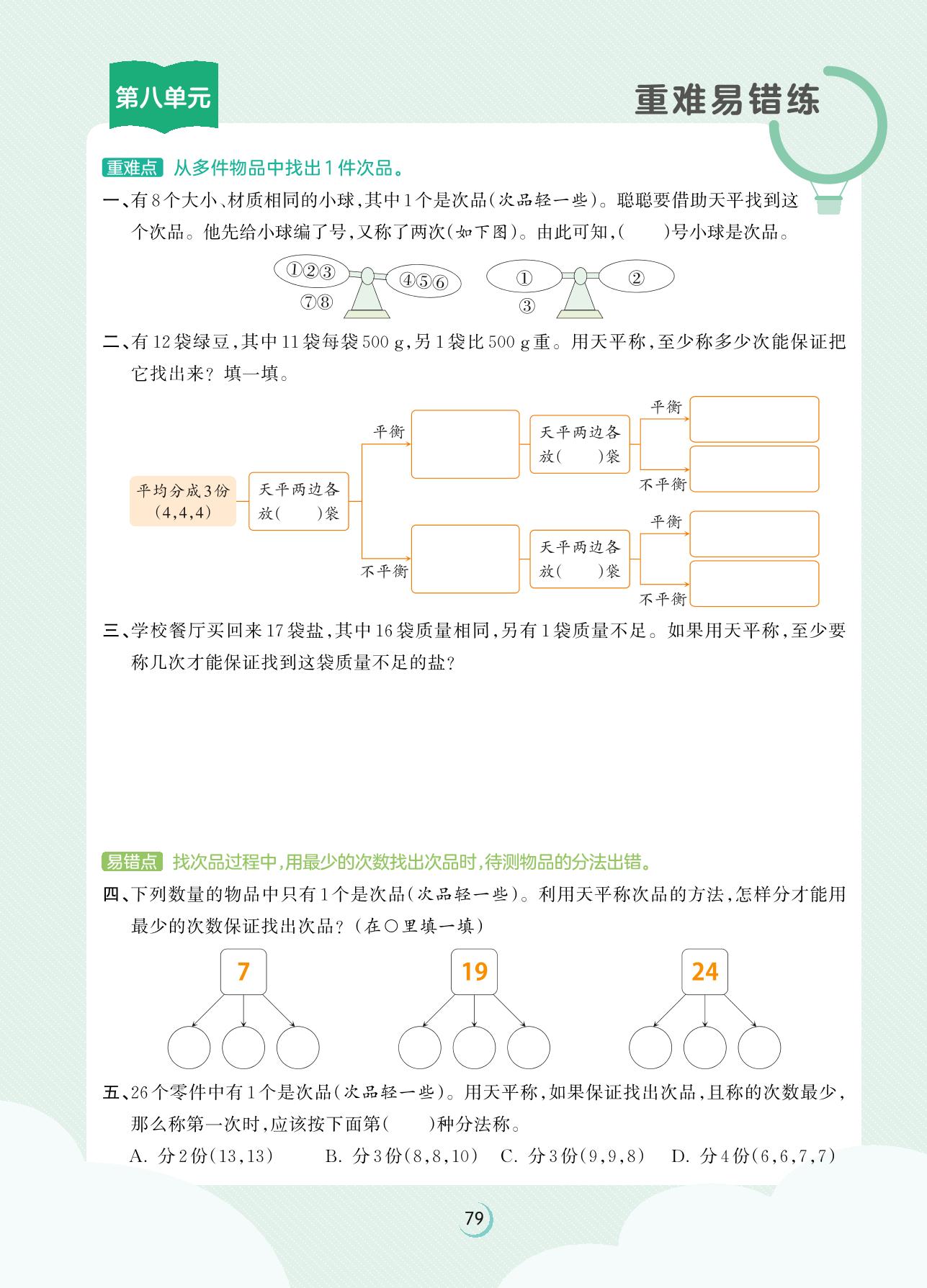 2023下册五年级数学人教版 第八单元重难易错练