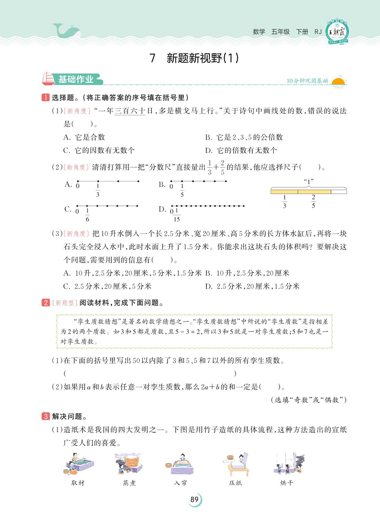 2023下册五年级数学人教版 第九单元 总复习——7 新题新视野(1)