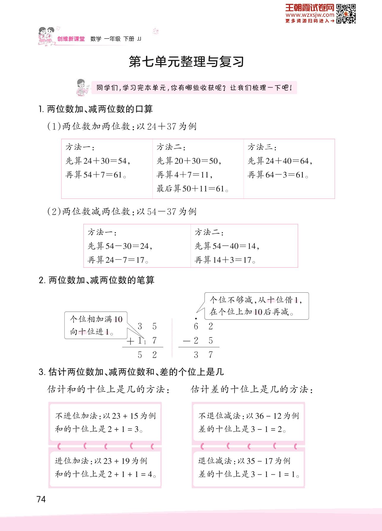 2023下册一年级数学冀教版 第七单元整理与复习