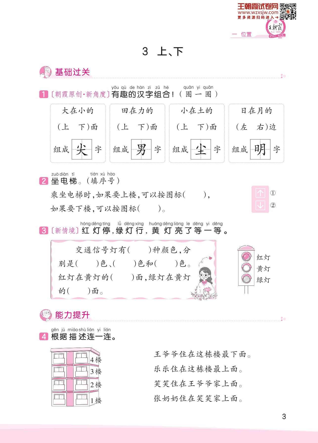 2023下册一年级数学冀教版 一 位置——3 上、下