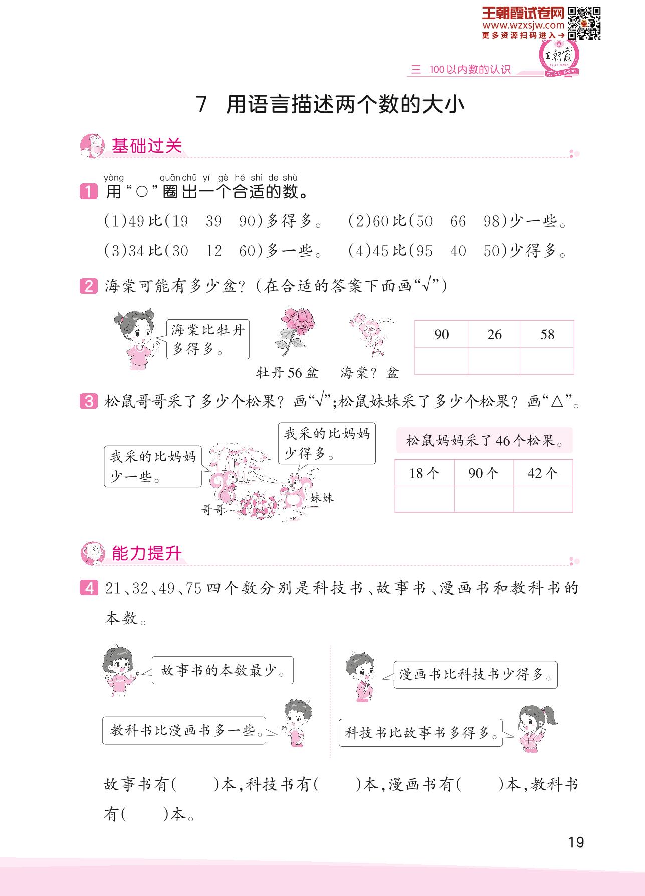 2023下册一年级数学冀教版 三 100以内数的认识——7 用语言描述两个数的大小