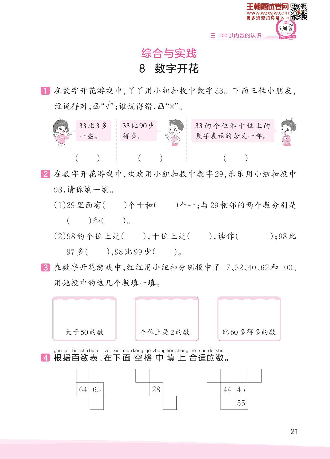 2023下册一年级数学冀教版 三 100以内数的认识——8 数字开花