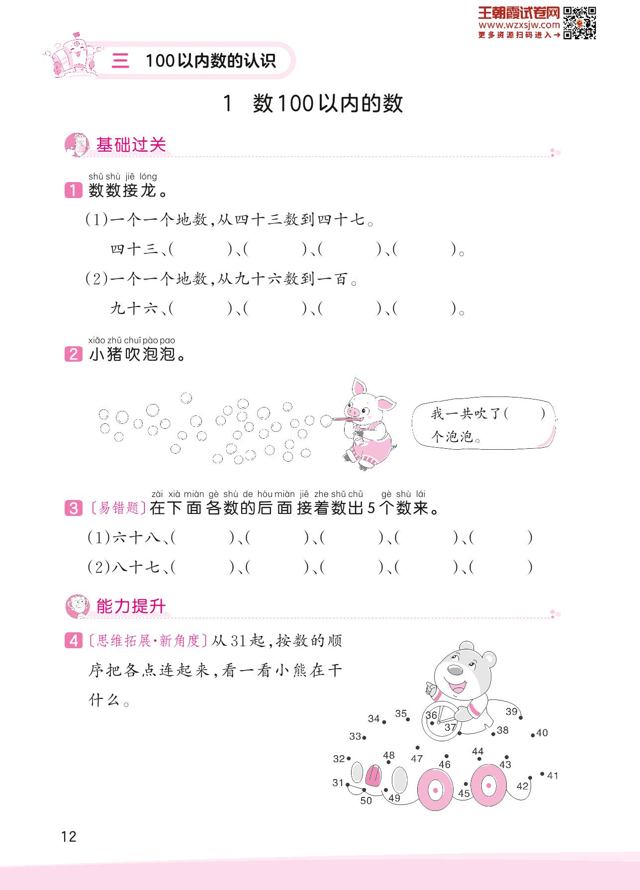 2023下册一年级数学冀教版 三 100以内数的认识——1 数100以内的数