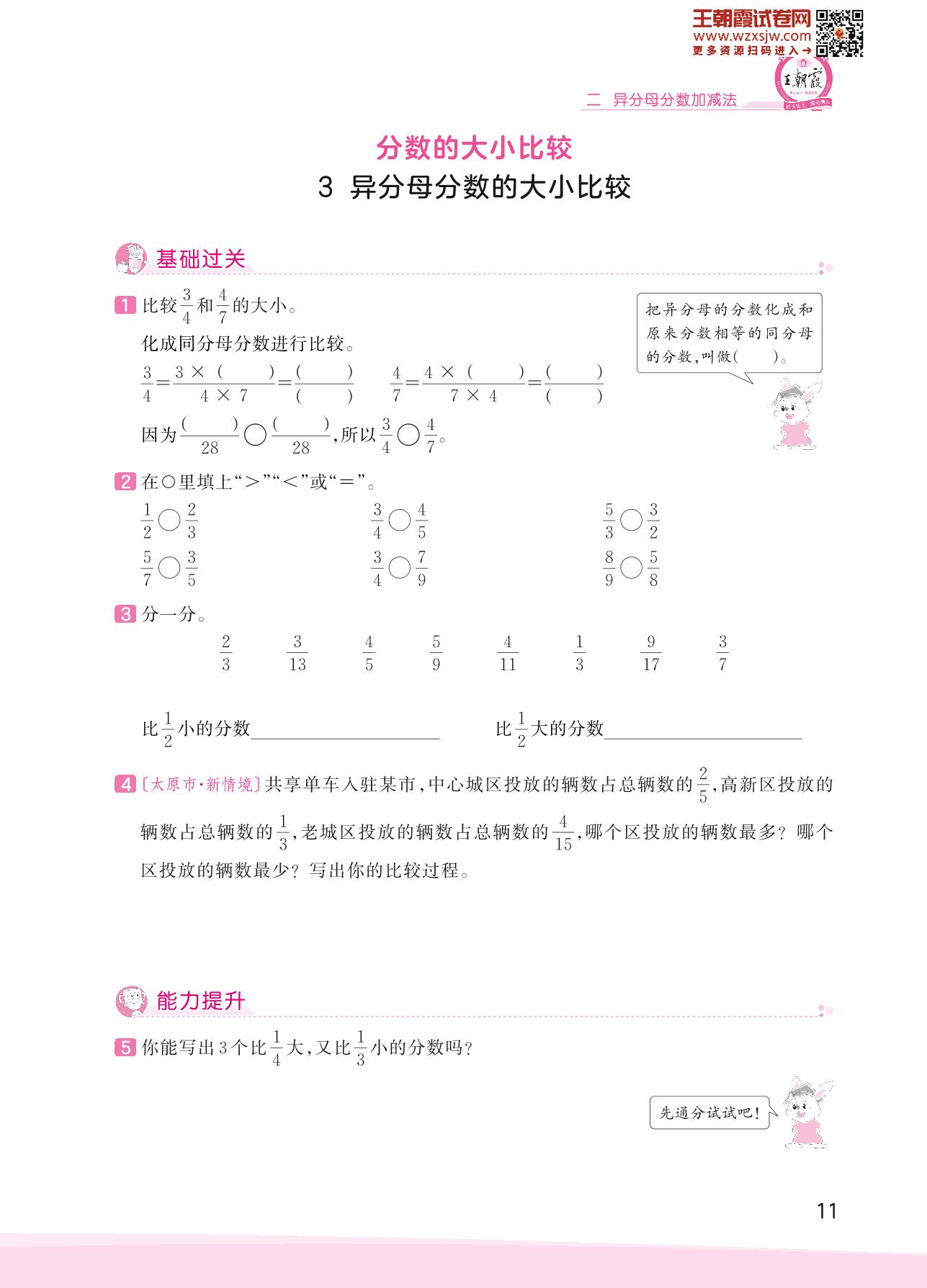 2023下册五年级数学冀教版 二 异分母分数加减法——3 异分母分数的大小比较