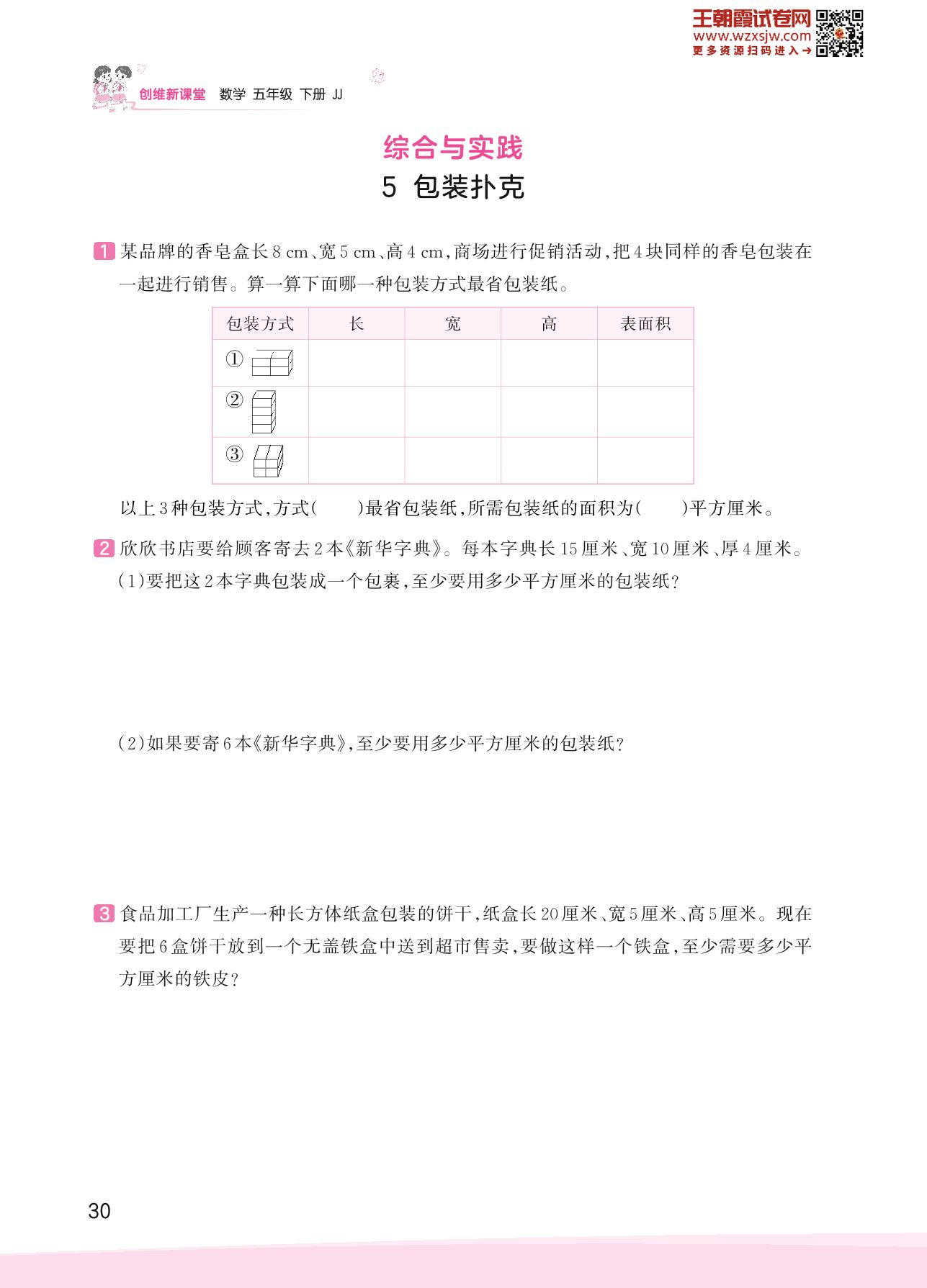 2023下册五年级数学冀教版 三 长方体和正方体——5 包装扑克