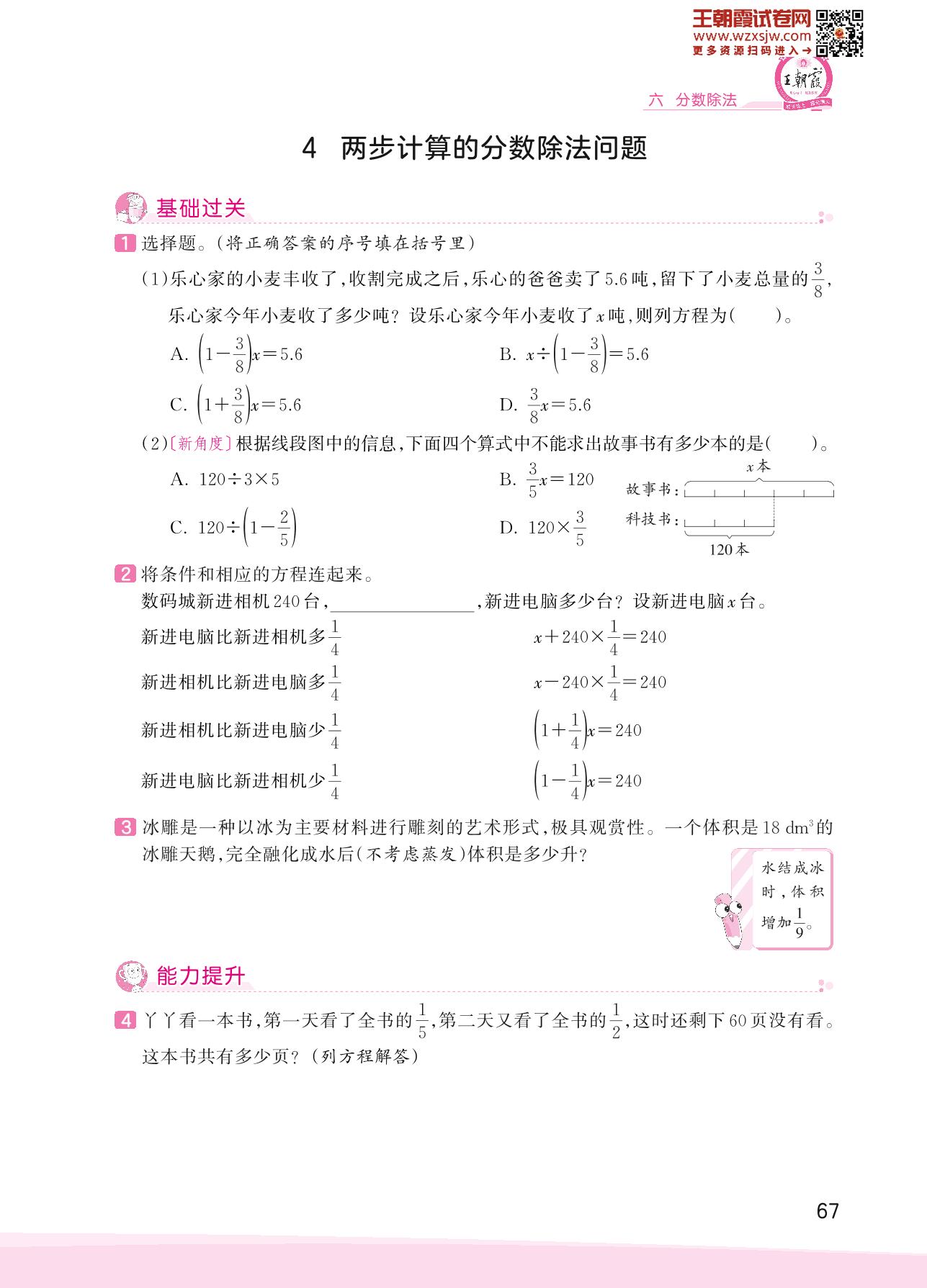 2023下册五年级数学冀教版 六 分数除法——4 两步计算的分数除法问题