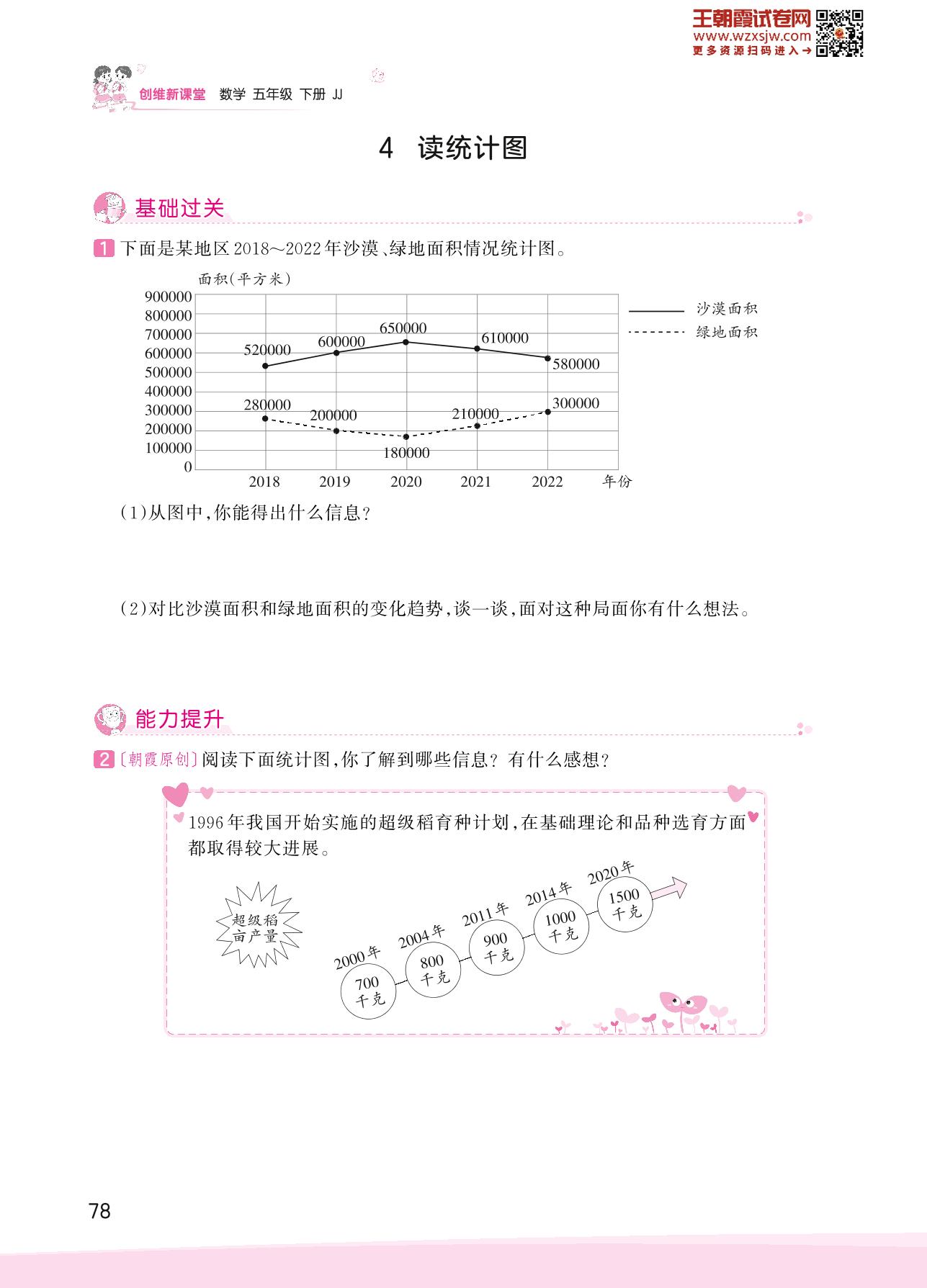 2023下册五年级数学冀教版 七 折线统计图——4 读统计图