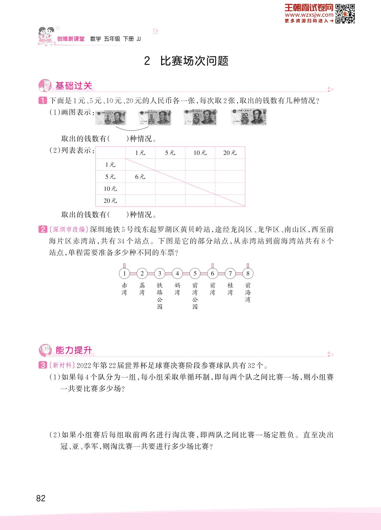 2023下册五年级数学冀教版 八 探索乐园——2 比赛场次问题