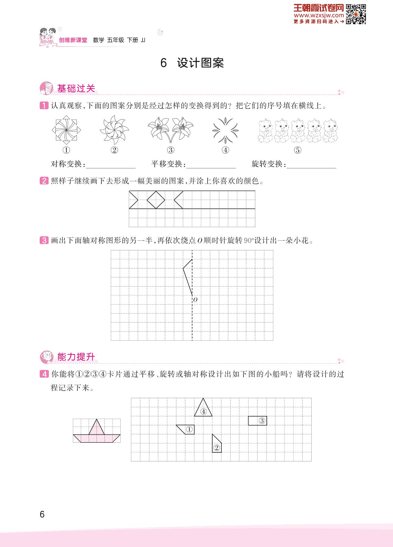 2023下册五年级数学冀教版 一 图形的运动(二)——6 设计图案