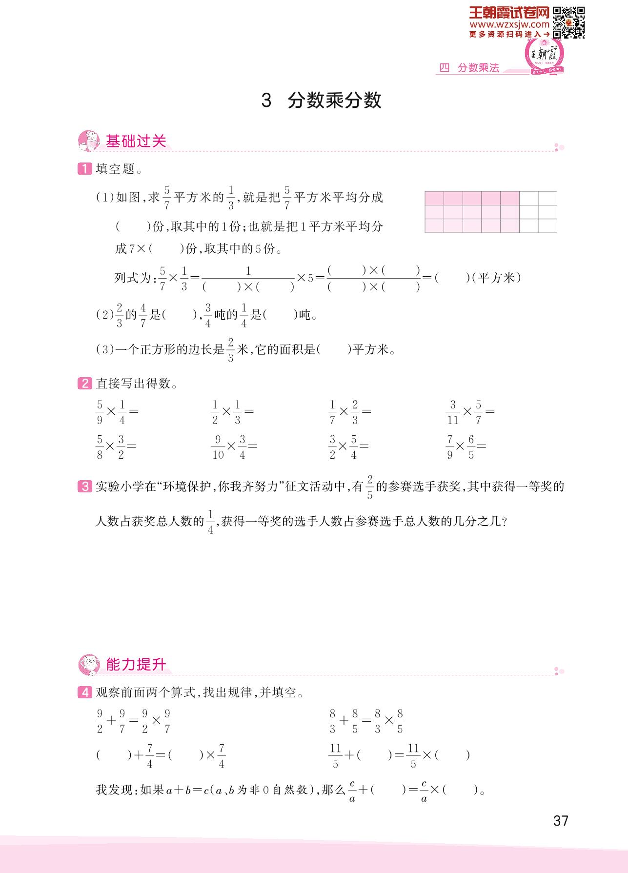 2023下册五年级数学冀教版 四 分数乘法——3 分数乘分数