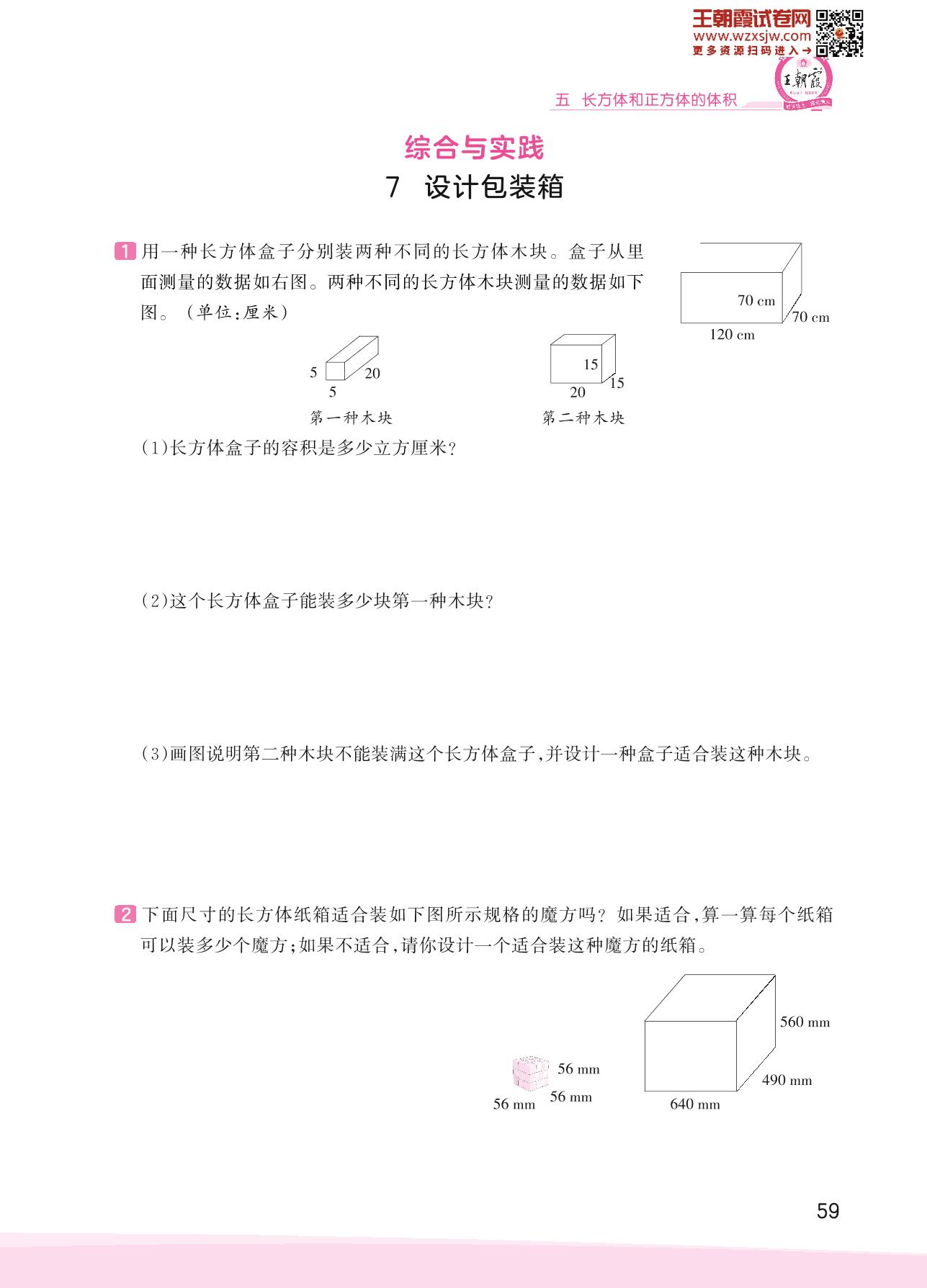 2023下册五年级数学冀教版 五 长方体和正方体的体积——7 设计包装箱