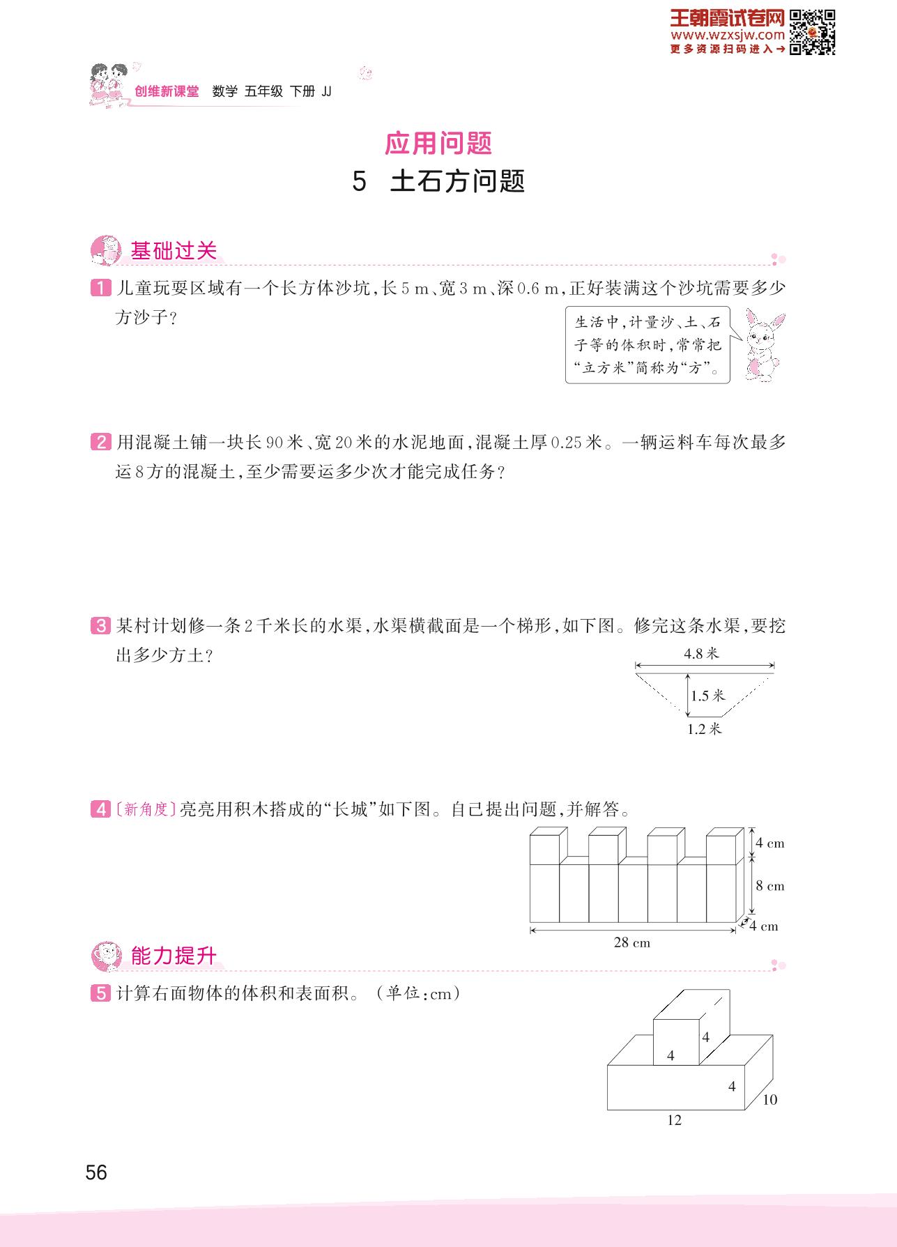 2023下册五年级数学冀教版 五 长方体和正方体的体积——5 土石方问题