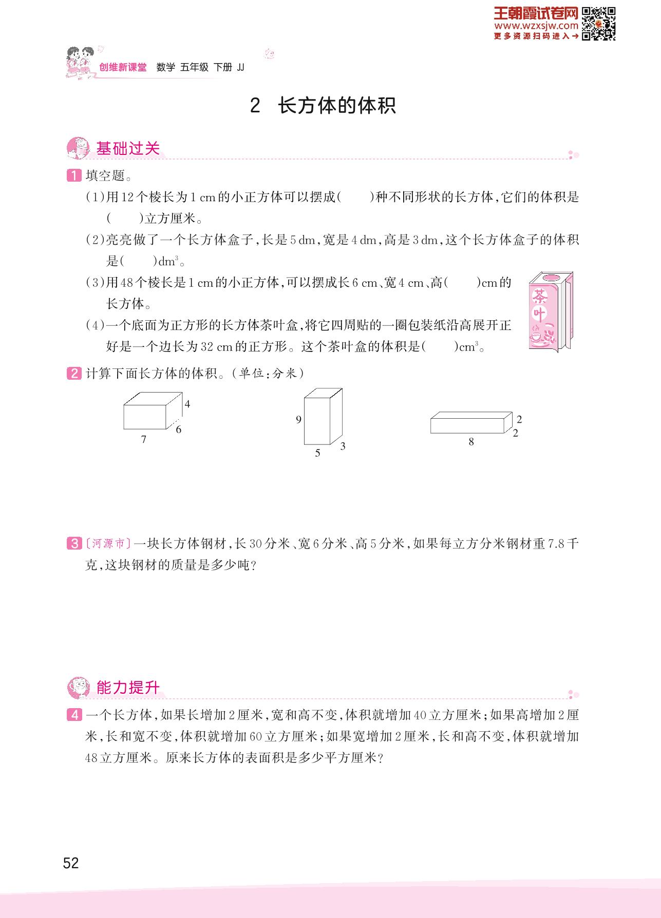 2023下册五年级数学冀教版 五 长方体和正方体的体积——2 长方体的体积