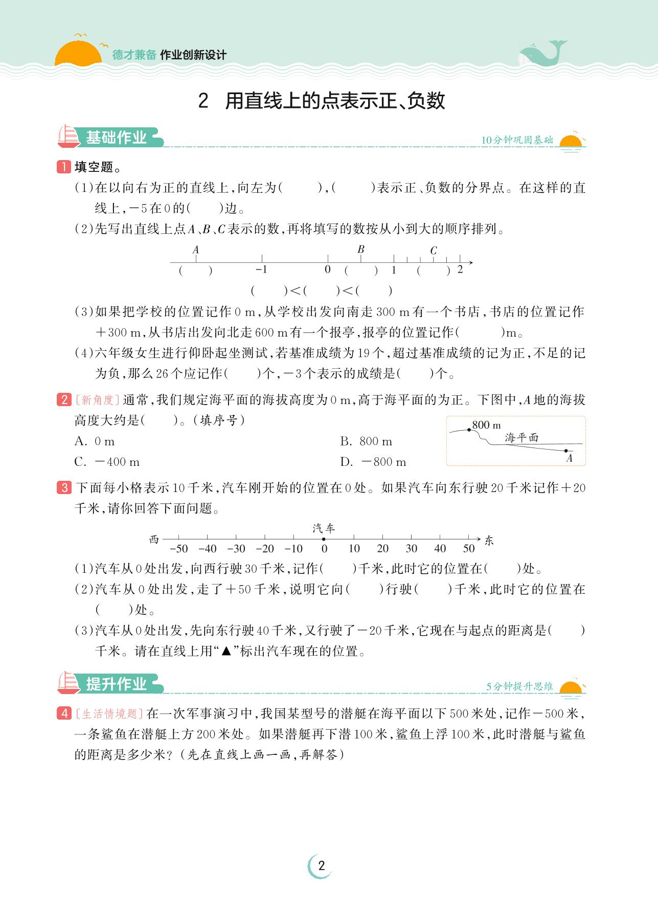 2023下册六年级数学人教版 第一单元 负数——2 用直线上的点表示正、负数
