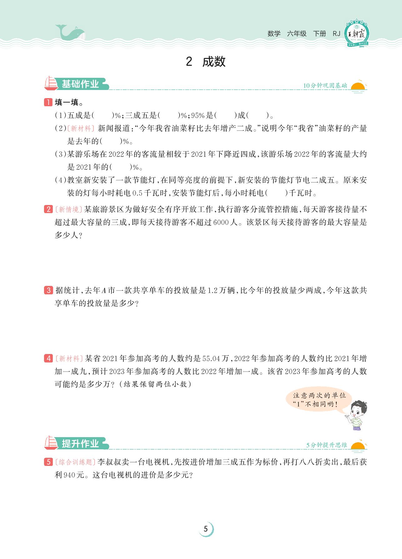 2023下册六年级数学人教版 第二单元 百分数(二)——2 成数