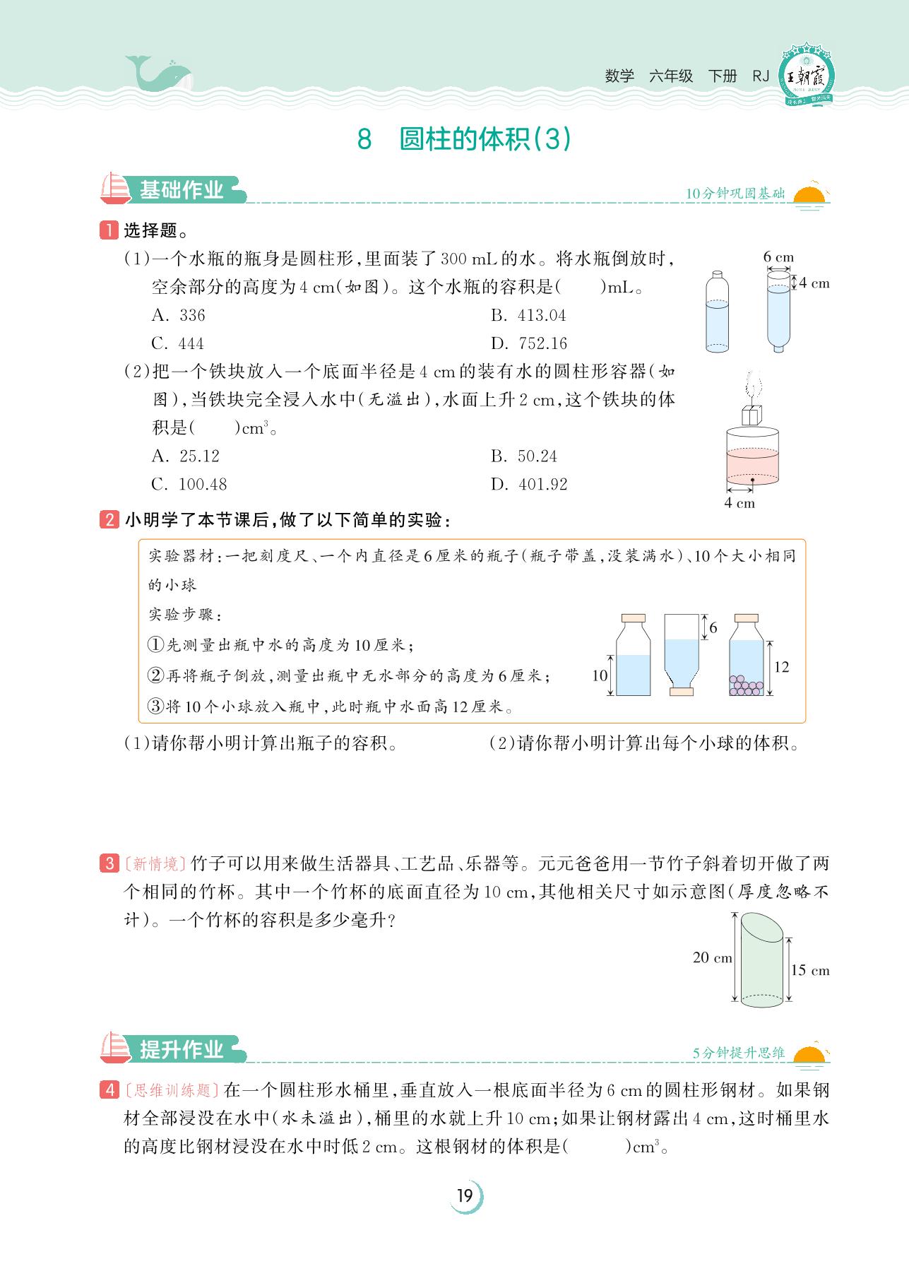 2023下册六年级数学人教版 第三单元 圆柱与圆锥——8 圆柱的体积(3)