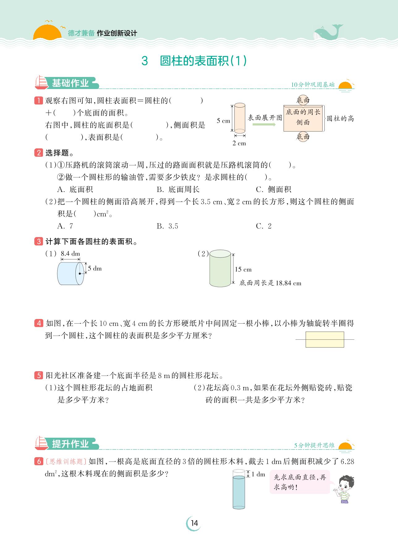 2023下册六年级数学人教版 第三单元 圆柱与圆锥——3 圆柱的表面积(1)