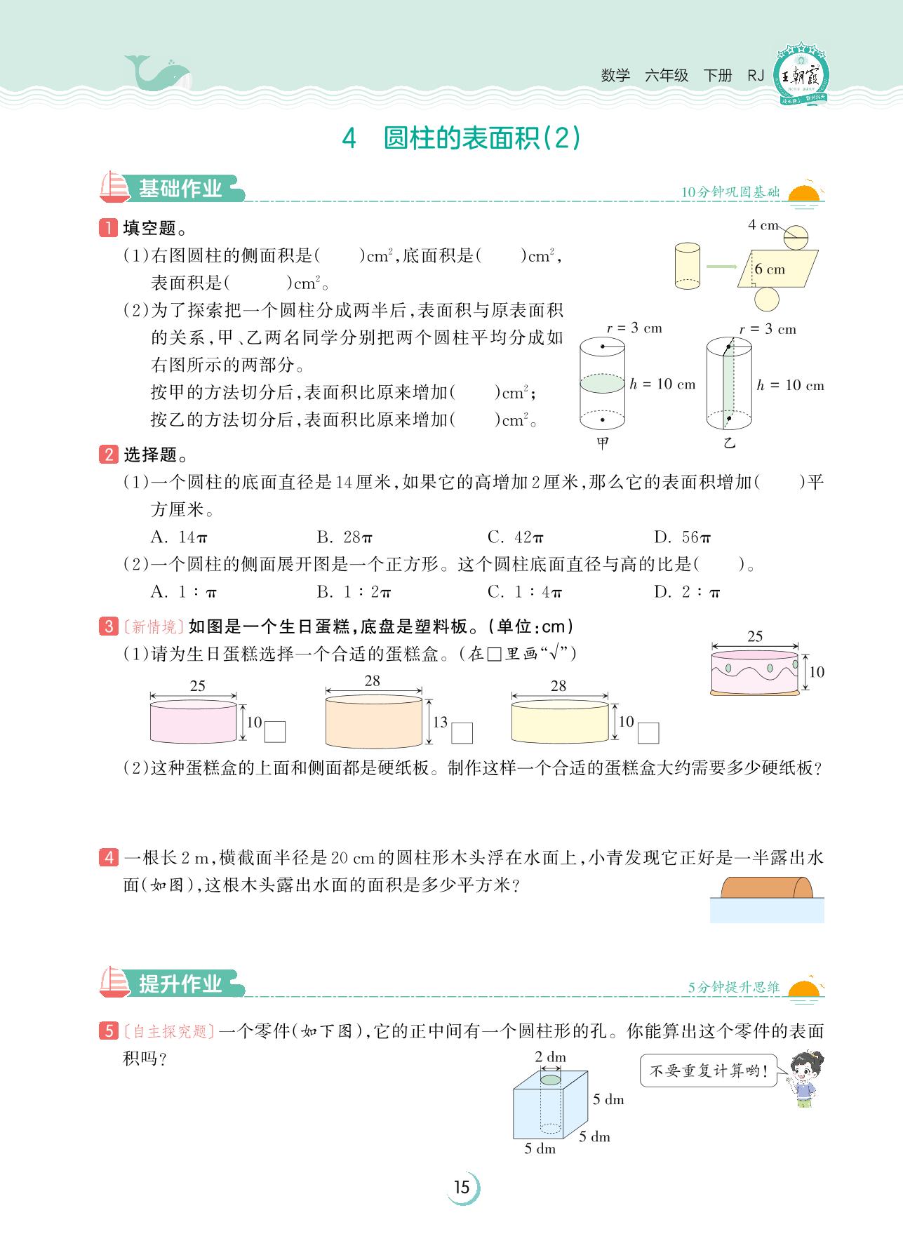 2023下册六年级数学人教版 第三单元 圆柱与圆锥——4 圆柱的表面积(2)