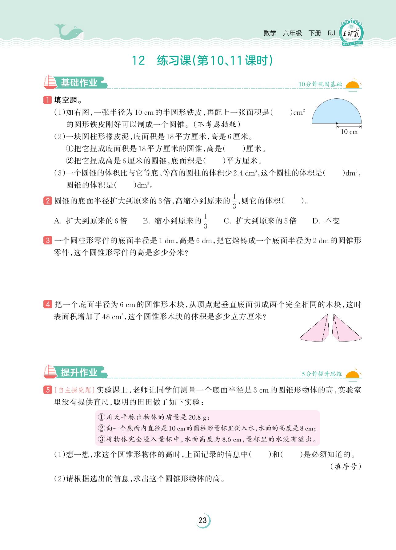 2023下册六年级数学人教版 第三单元 圆柱与圆锥——12 练习课(第10、11课时)