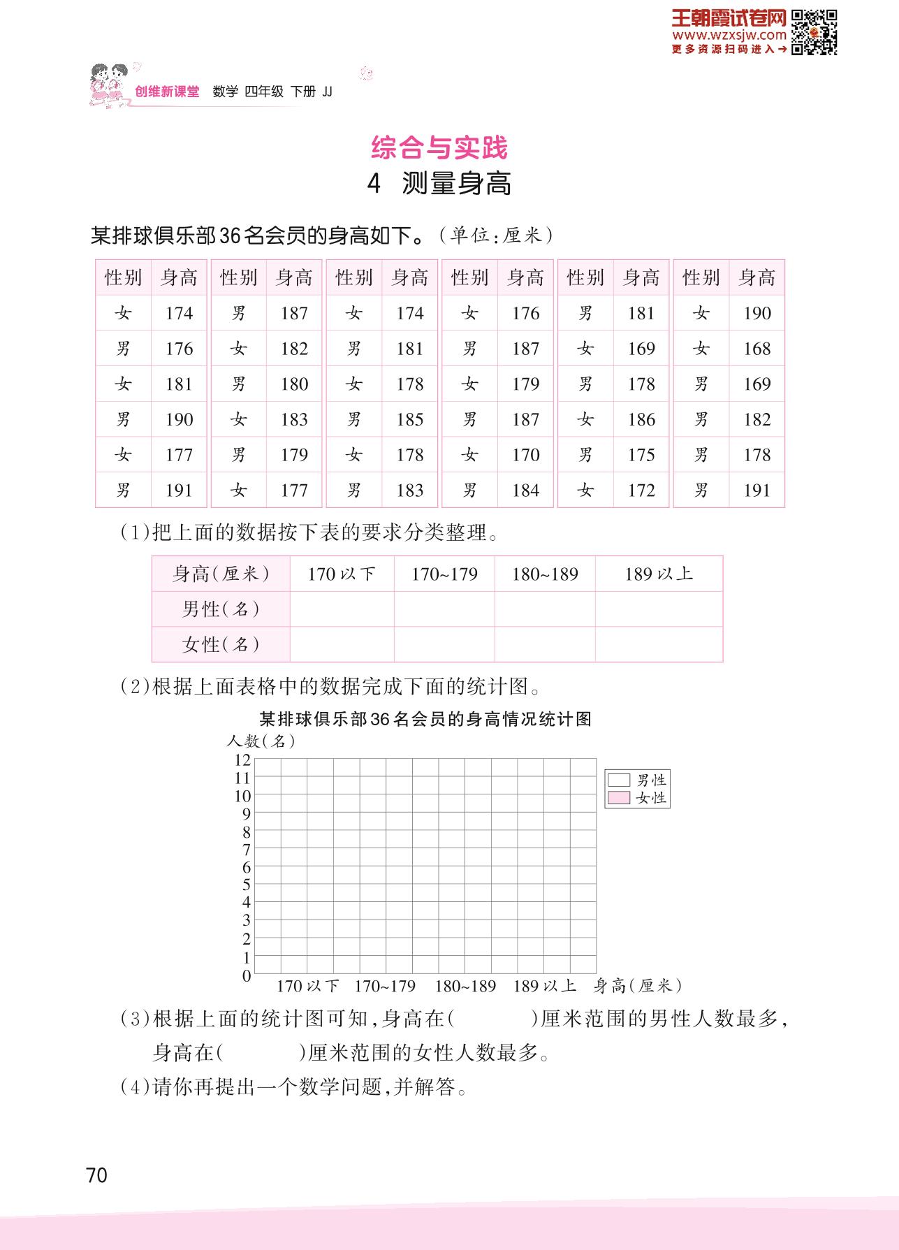 2023下册四年级数学冀教版 七 复式条形统计图——4 测量身高