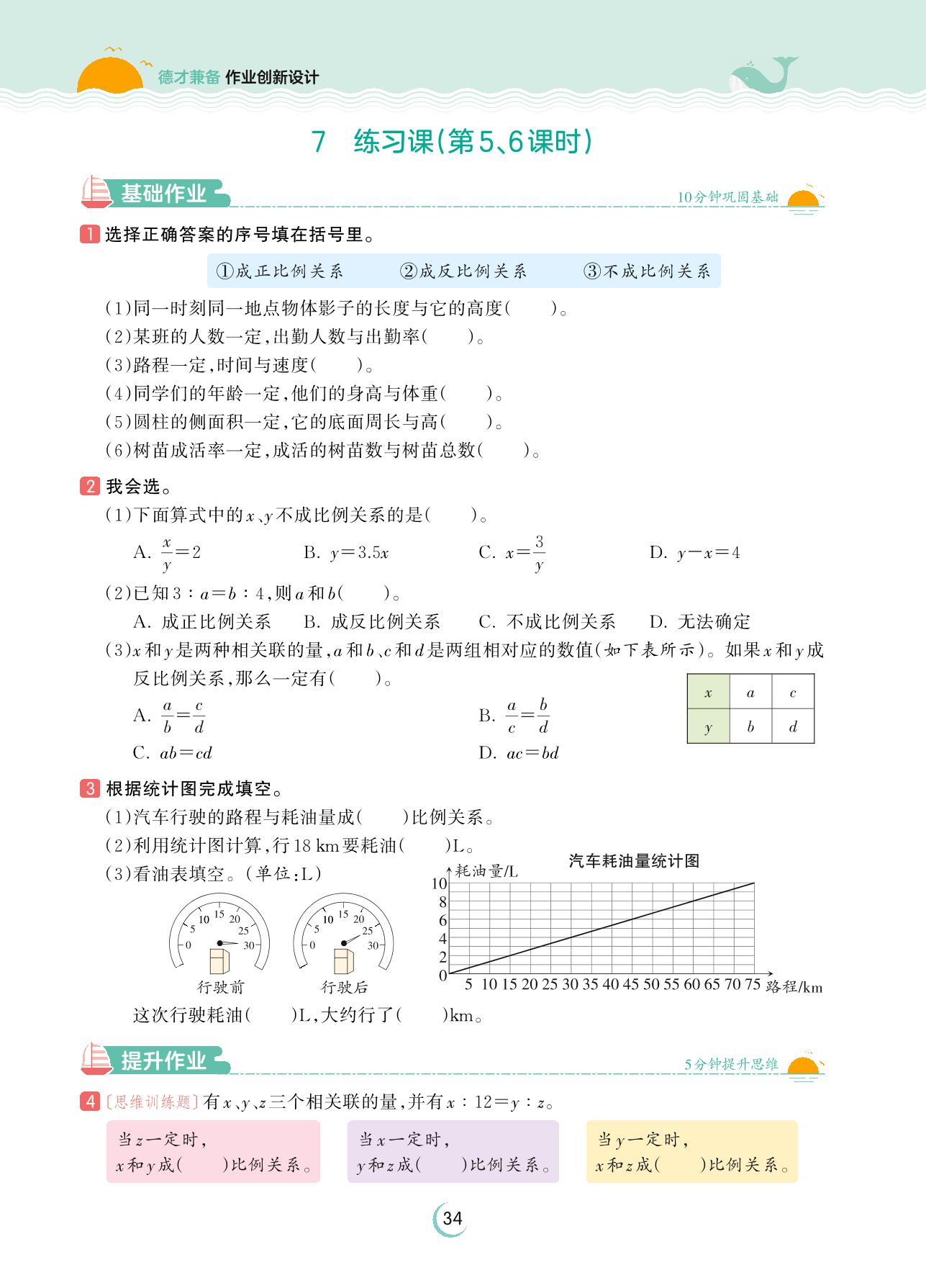 2023下册六年级数学人教版 第四单元 比例——7 练习课(第5、6课时)