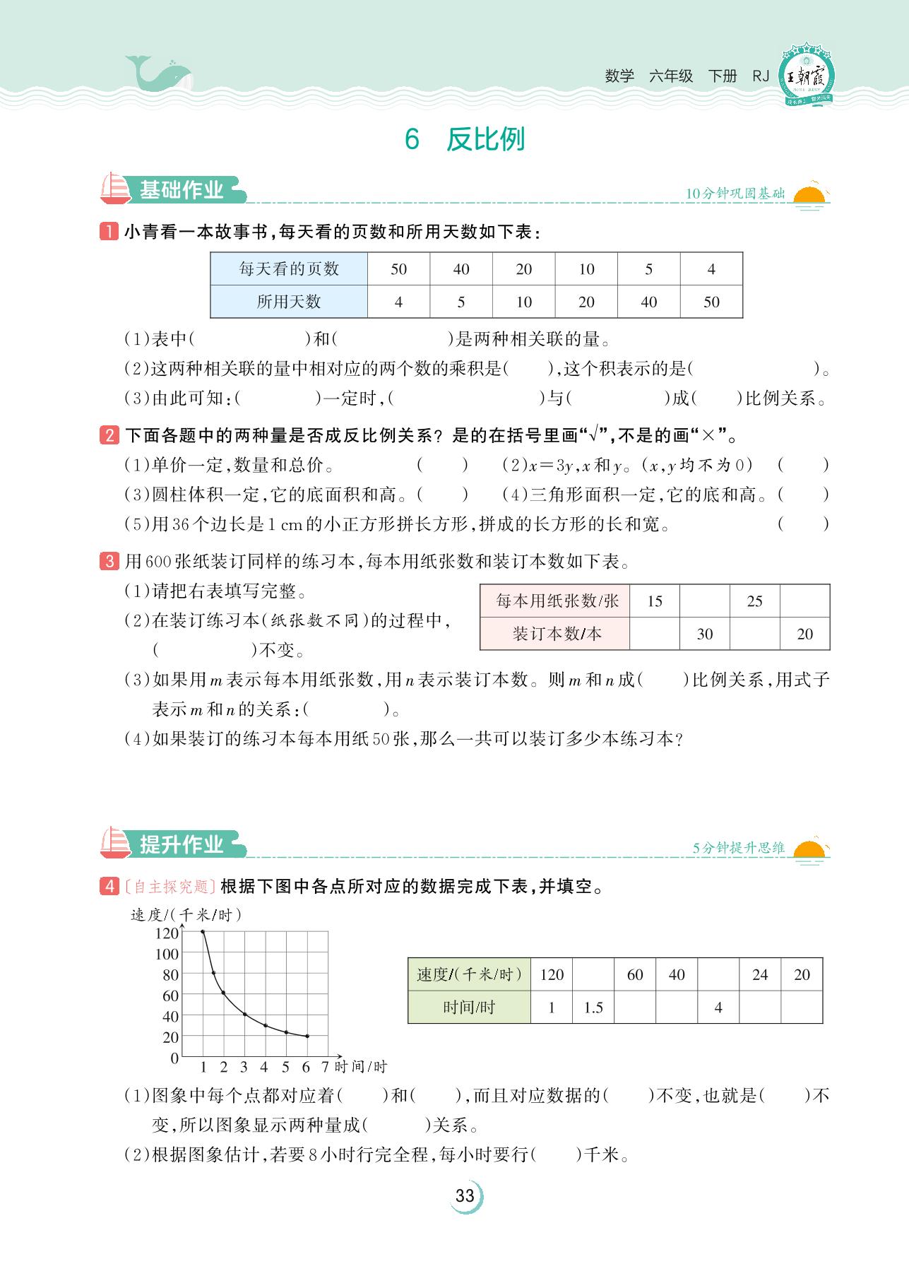 2023下册六年级数学人教版 第四单元 比例——6 反比例