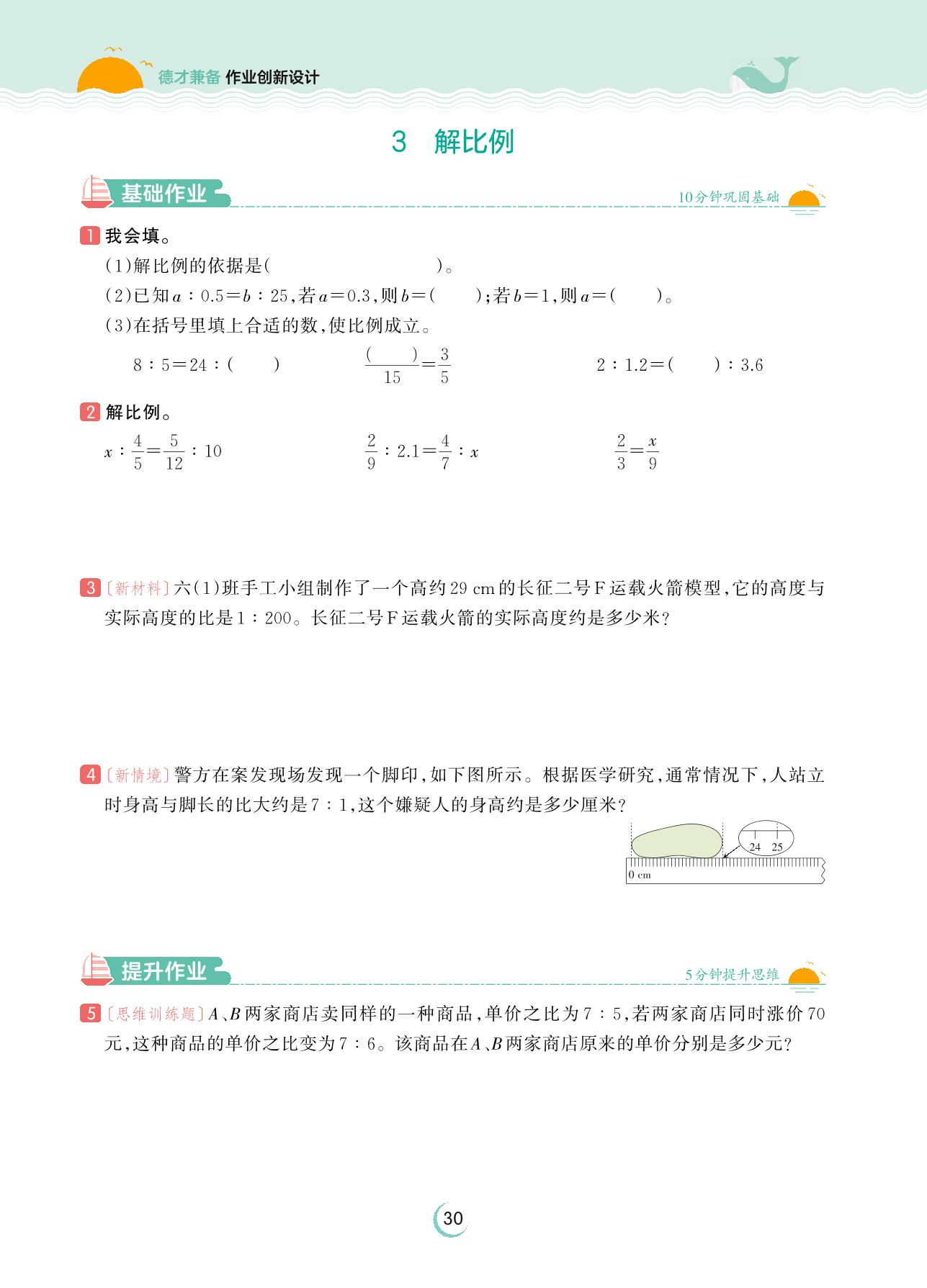 2023下册六年级数学人教版 第四单元 比例——3 解比例
