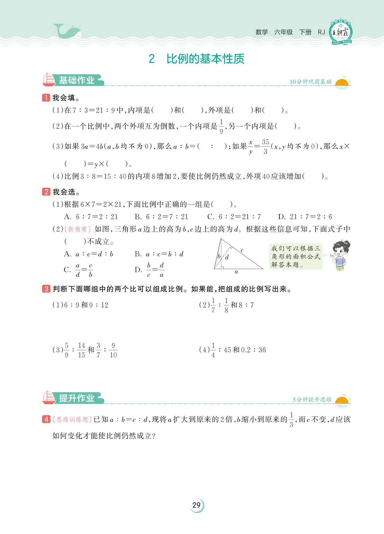 2023下册六年级数学人教版 第四单元 比例——2 比例的基本性质
