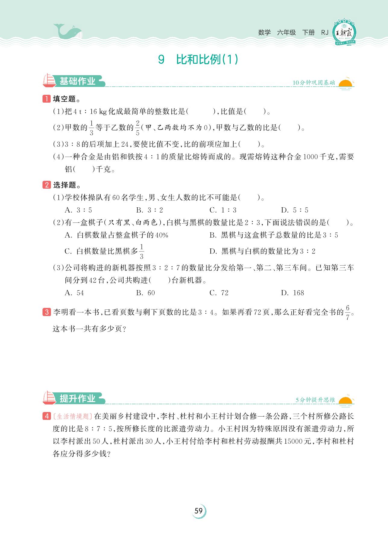 2023下册六年级数学人教版 第六单元 总复习——9 比和比例(1)