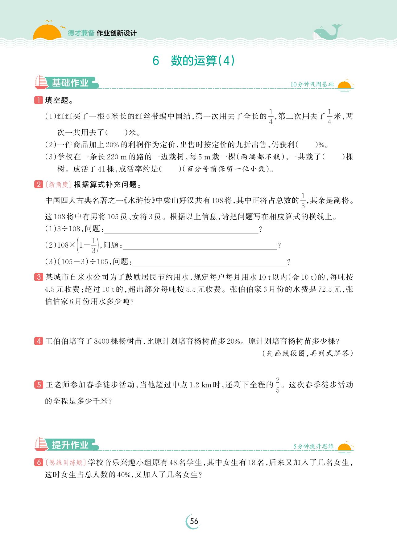 2023下册六年级数学人教版 第六单元 总复习——6 数的运算(4)