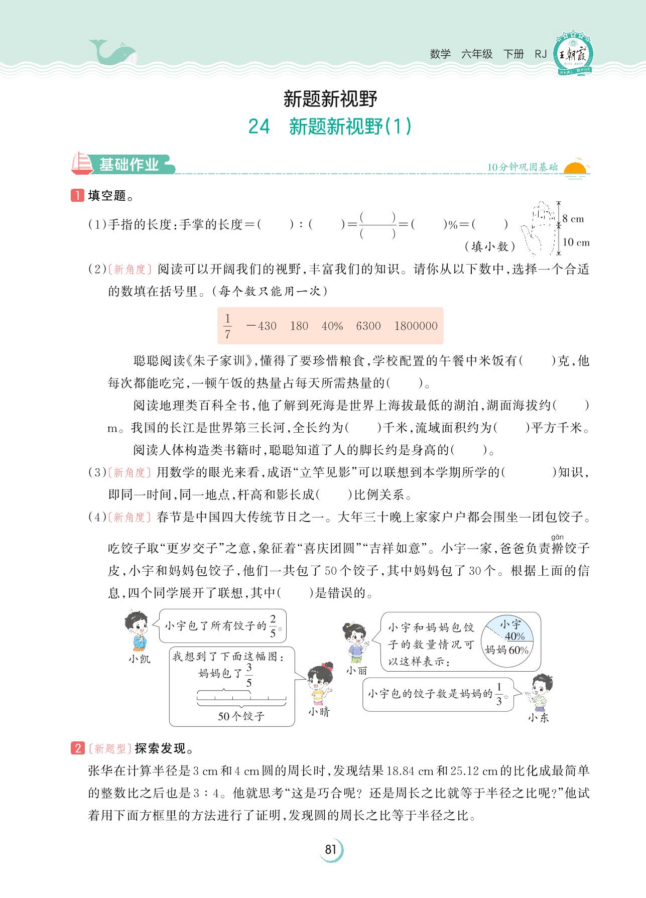 2023下册六年级数学人教版 第六单元 总复习——24 新题新视野(1)