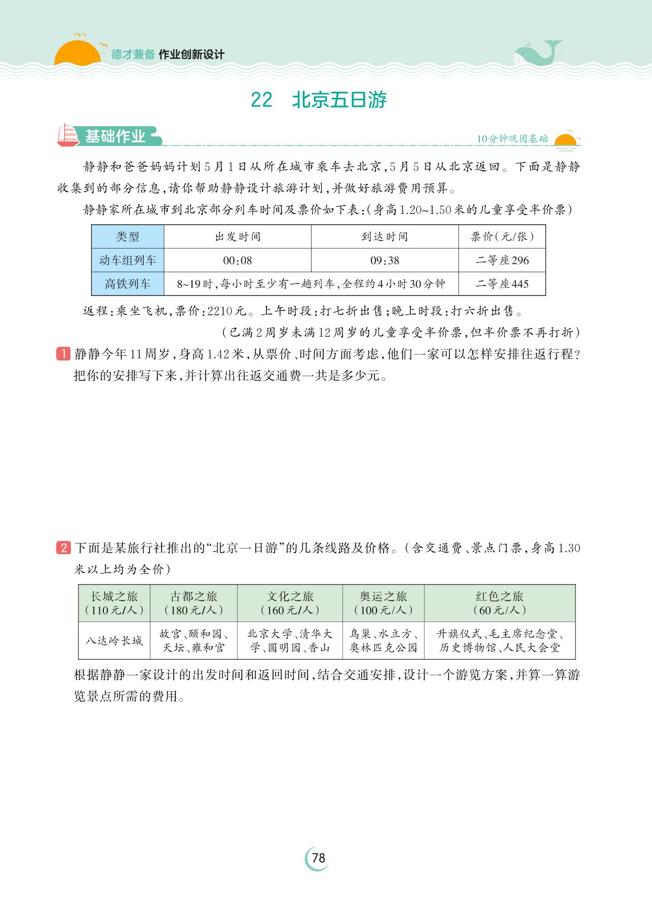 2023下册六年级数学人教版 第六单元 总复习——22 北京五日游