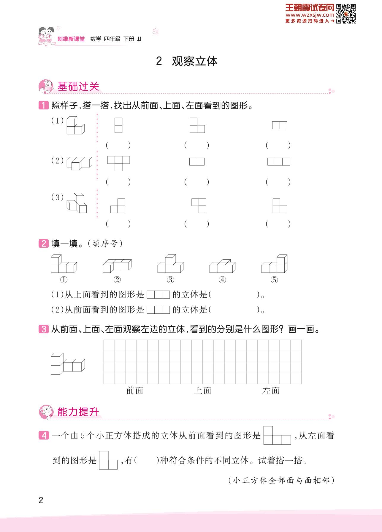2023下册四年级数学冀教版 一 观察物体(二)——2 观察立体