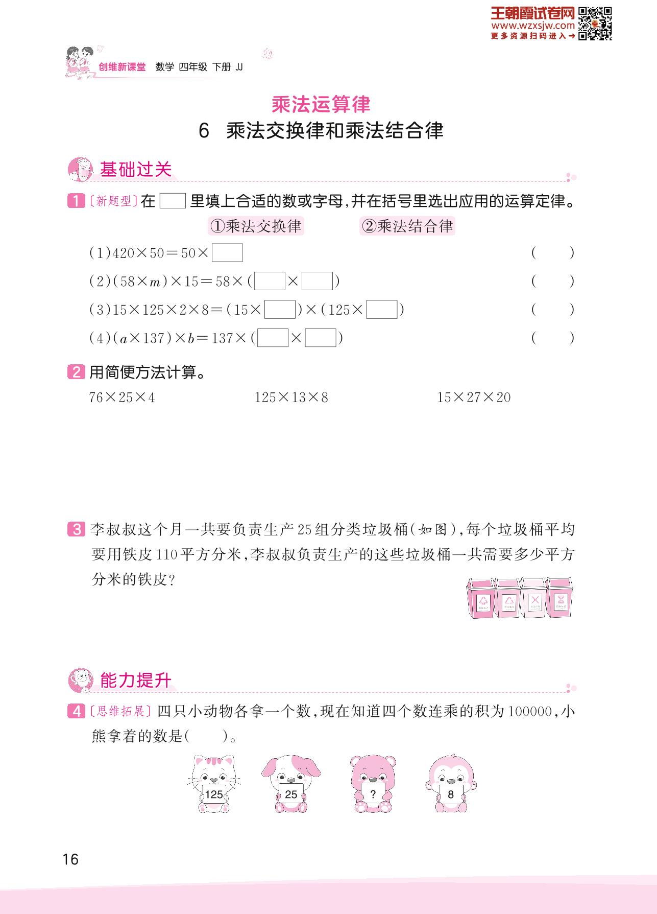2023下册四年级数学冀教版 三 三位数乘两位数——6 乘法交换律和乘法结合律