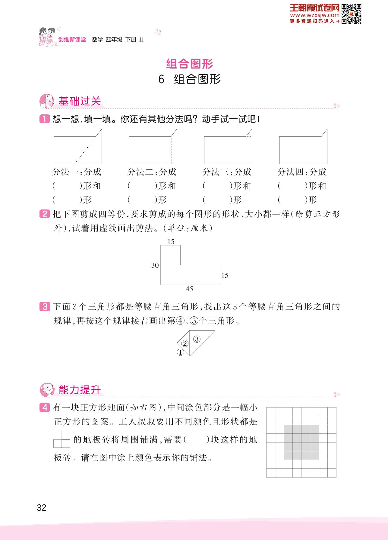2023下册四年级数学冀教版 四 多边形的认识——6 组合图形