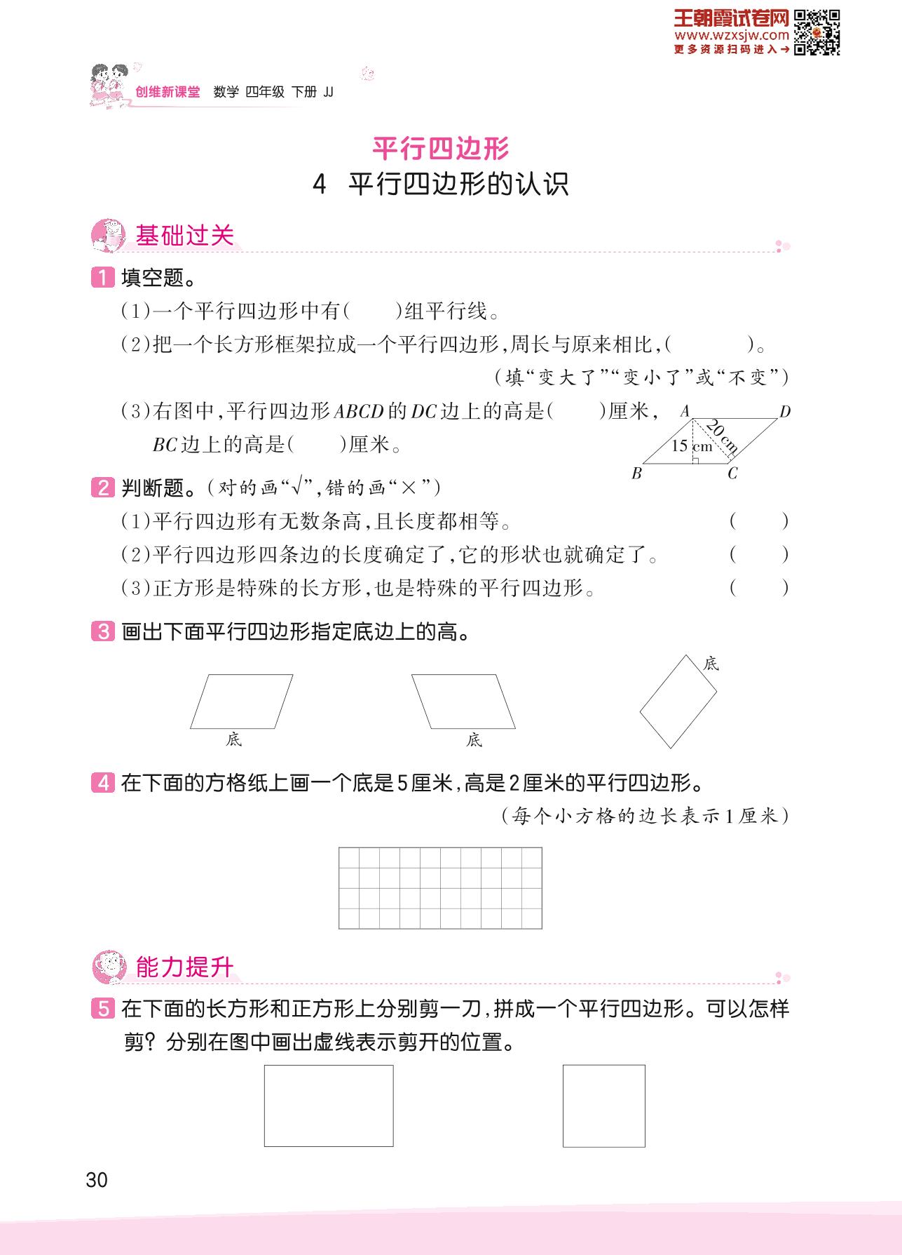 2023下册四年级数学冀教版 四 多边形的认识——4 平行四边形的认识