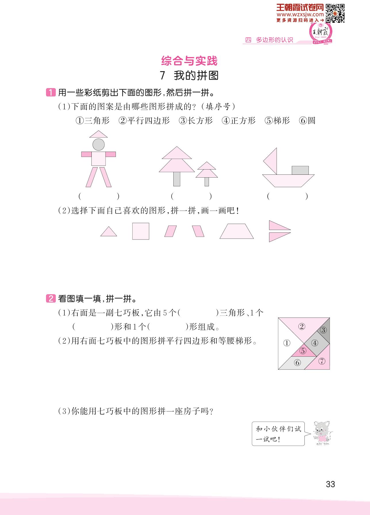 2023下册四年级数学冀教版 四 多边形的认识——7 我的拼图