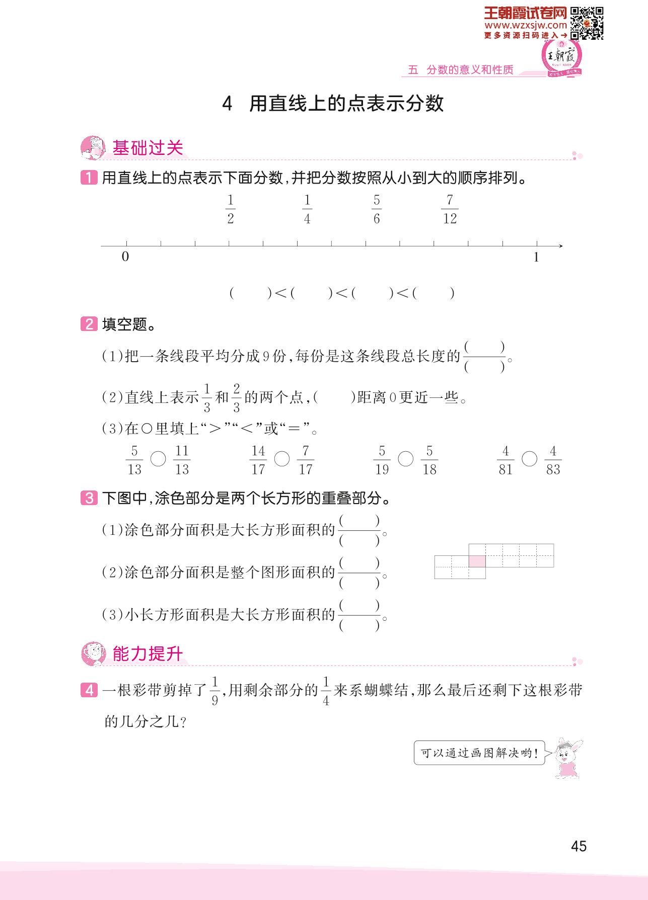 2023下册四年级数学冀教版 五 分数的意义和性质——4 用直线上的点表示分数