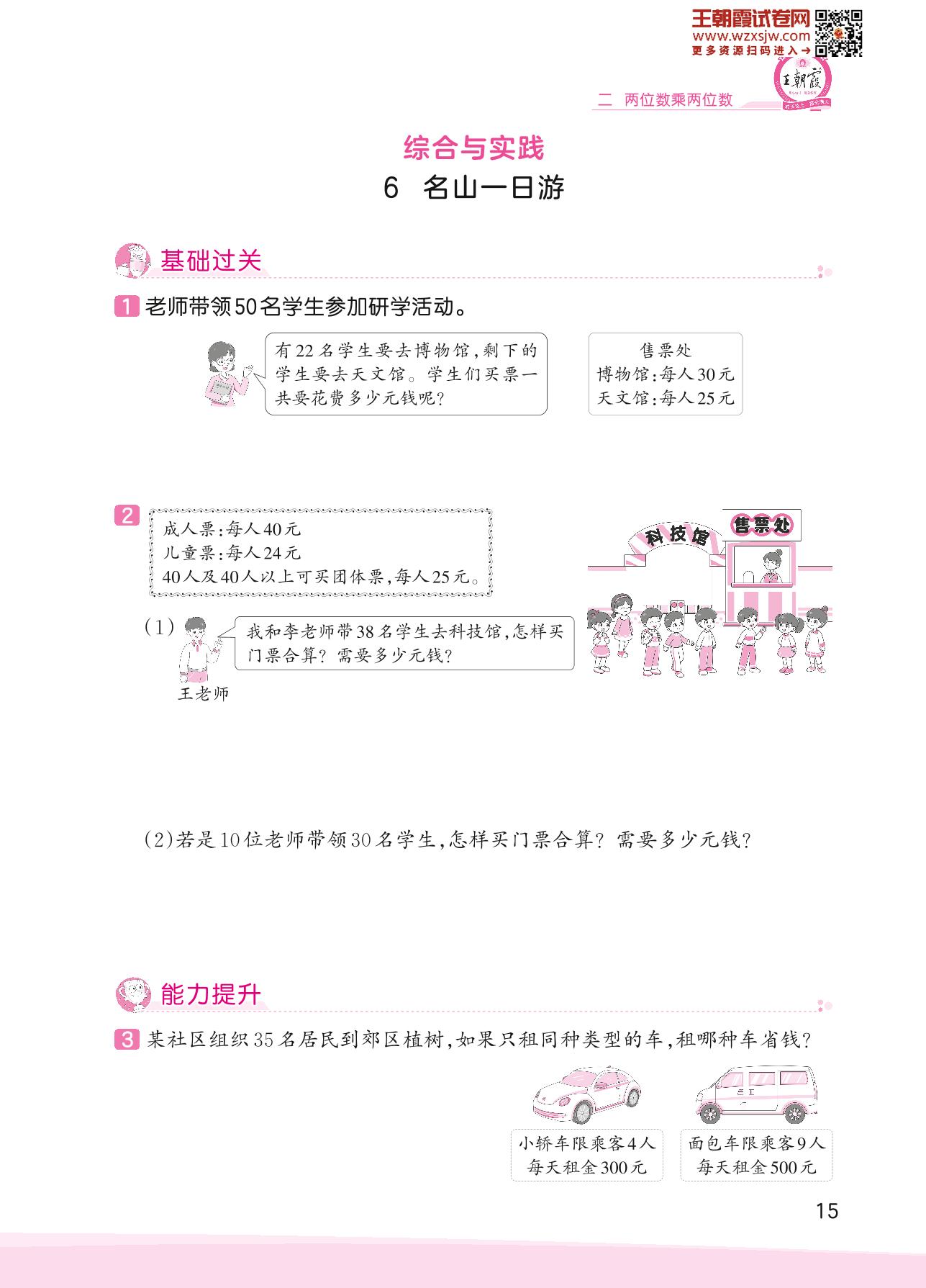 2023下册三年级数学冀教版 二 两位数乘两位数——6 名山一日游